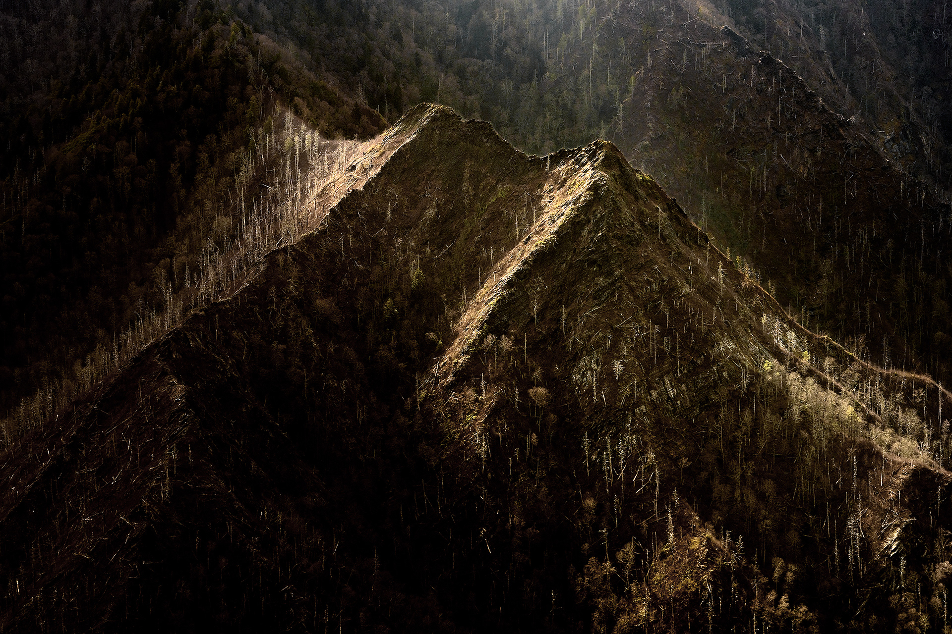 Place of Blue Smoke is an ongoing series of color photographs made entirely within the most remote reaches of Great Smoky Mountains National Park. Since 2023, I have returned to this terrain again and again, drawn by a desire to better experience its complexity. The work reflects a sustained attention to the subtle and not-so-subtle forces that shape this landscape and have done so for millennia. These photographs are not meant as documentation, but as personal responses, records of presence, rhythm, and return.
